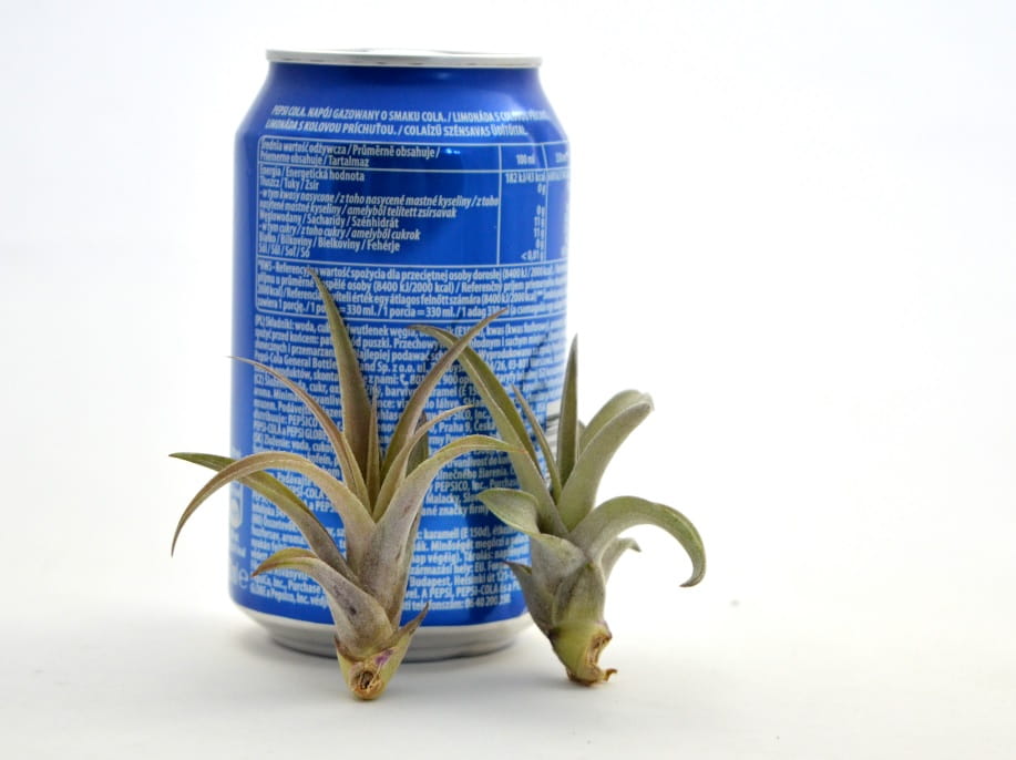 and each plant also has a photo with a can of a popular drink.