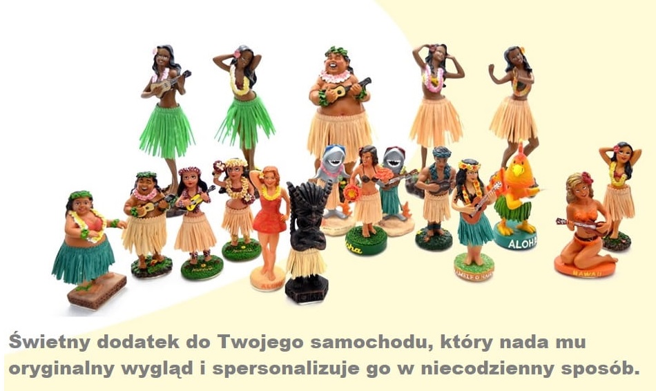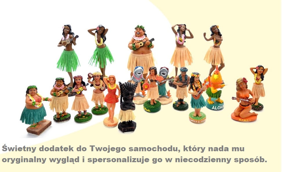 Wprowadź do swojego samochodu odrobinę egzotycznego klimatu Hawajów! Hula Doll Girl to ręcznie malowana figurka umieszczona na sprężynce, która podczas jazdy porusza się w rytm ruchu auta. To nie tylko dekoracja, ale także mały amulet dobrego nastroju – zawsze poprawi humor i przyciągnie uwagę pasażerów.