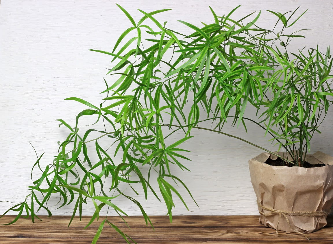 Roślina ta, pochodząca z Afryki Południowej, ma bardzo delikatny wygląd, który zawdzięcza drobnym, igiełkowatym tzw. Gałęziakom, pokrywającymi jej pędy. Ich kolor jest intensywnie zielony. Cechą wspólną wszystkich gatunków Asparagusa jest bujny wzrost. Nadają się zarówno do pojemników stojących jak i wiszących. Ciekawostką są liście przekształcone w “haczyki”, którymi roślina zaczepia o podpory, wspinając się na nią. Pielęgnując asparagusa należy uważać, aby nie zaczepić nimi o skórę, gdyż może być to bolesne. Roślina była dobrze znana w latach 60-70 XX w. Dzisiaj znów wraca do naszych domów. Swój powrót zawdzięcza swemu wyglądowi, który doskonale koresponduje z klasycznymi oraz nowoczesnymi wnętrzami.
