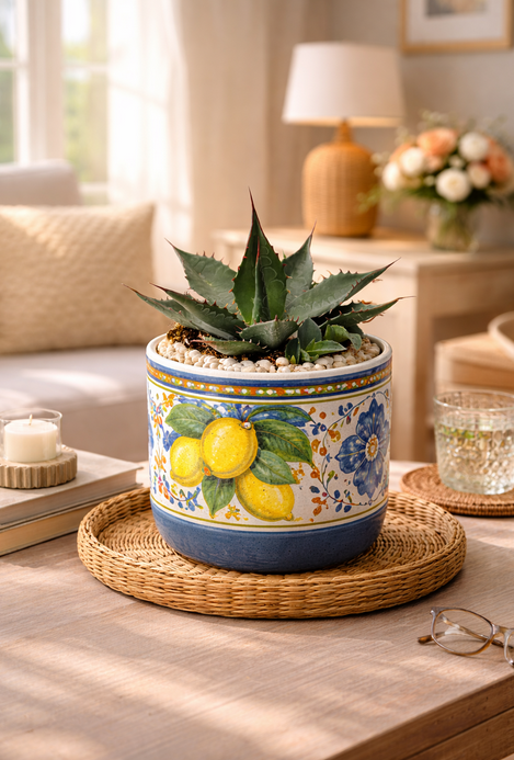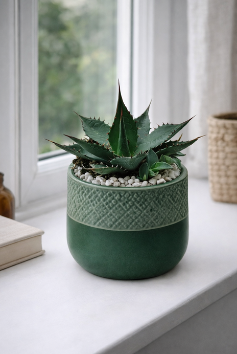 Agave ferox to jedna z najbardziej efektownych agaw, wyróżniająca się masywnymi liśćmi i mocnymi, wyrazistymi kolcami. To roślina o surowym, egzotycznym charakterze, która natychmiast przyciąga uwagę i nadaje wnętrzu wyrazistości.