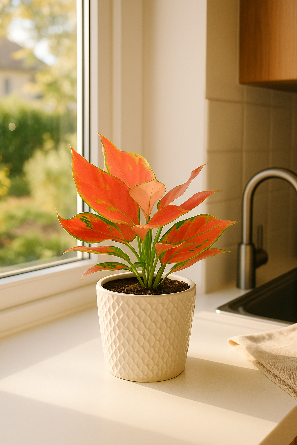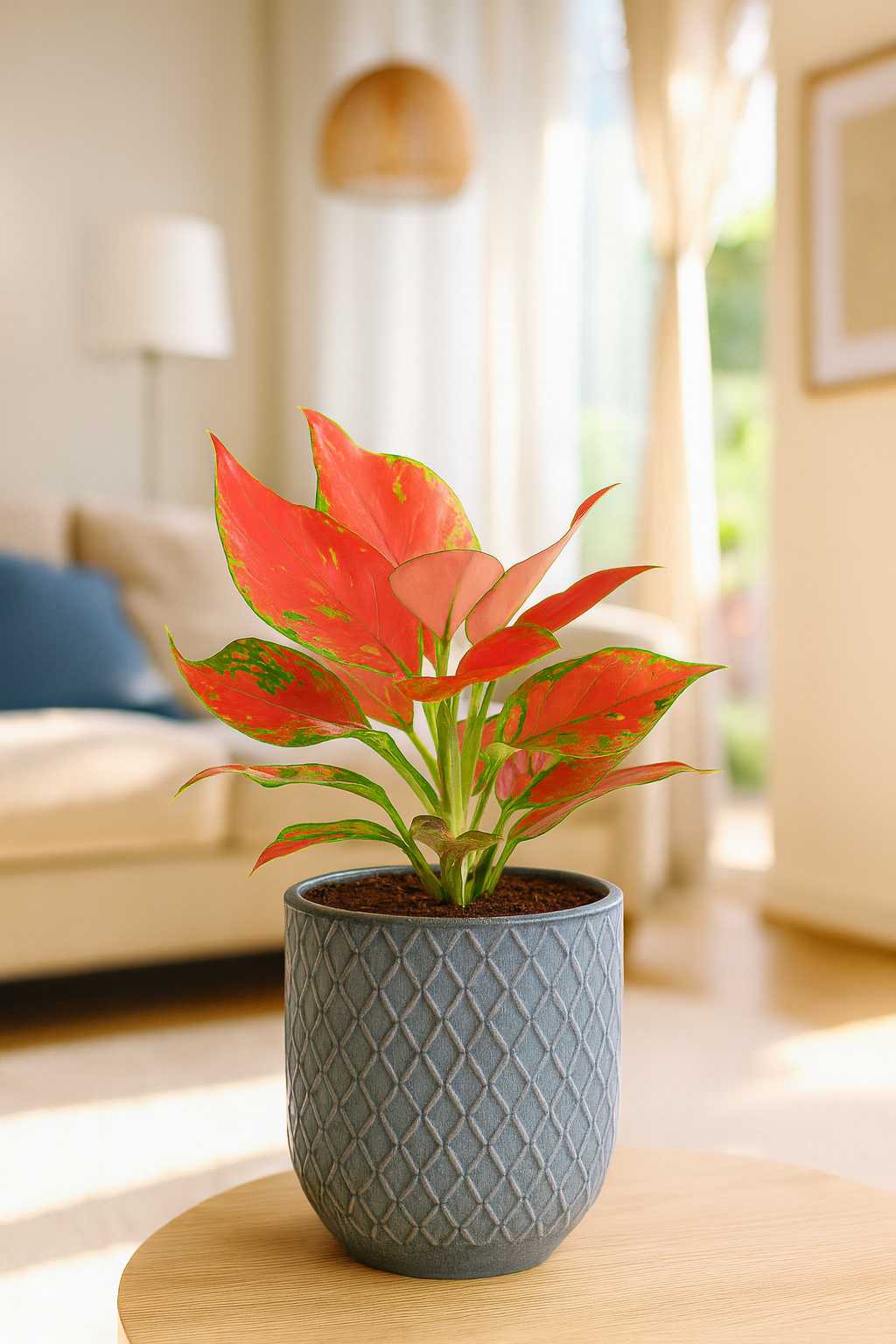 Aglaonema Cherry Baby z rodziny: Araceaeto . To wyjątkowo dekoracyjna odmiana popularnej aglaonemy, zachwycająca swoimi intensywnie różowo-zielonymi liśćmi. Pochodzi z wilgotnych lasów Azji Południowo-Wschodniej, gdzie rośnie w cieniu drzew – dlatego doskonale radzi sobie również w domowych warunkach, nawet w miejscach o umiarkowanym świetle. Jej kompaktowy pokrój (osiąga ok. 30–40 cm wysokości) oraz soczyste barwy sprawiają, że Aglaonema Cherry Baby to idealna roślina doniczkowa do salonu, sypialni lub biura. To jedna z najpiękniejszych odmian aglaonem – elegancka, nowoczesna i łatwa w pielęgnacji.