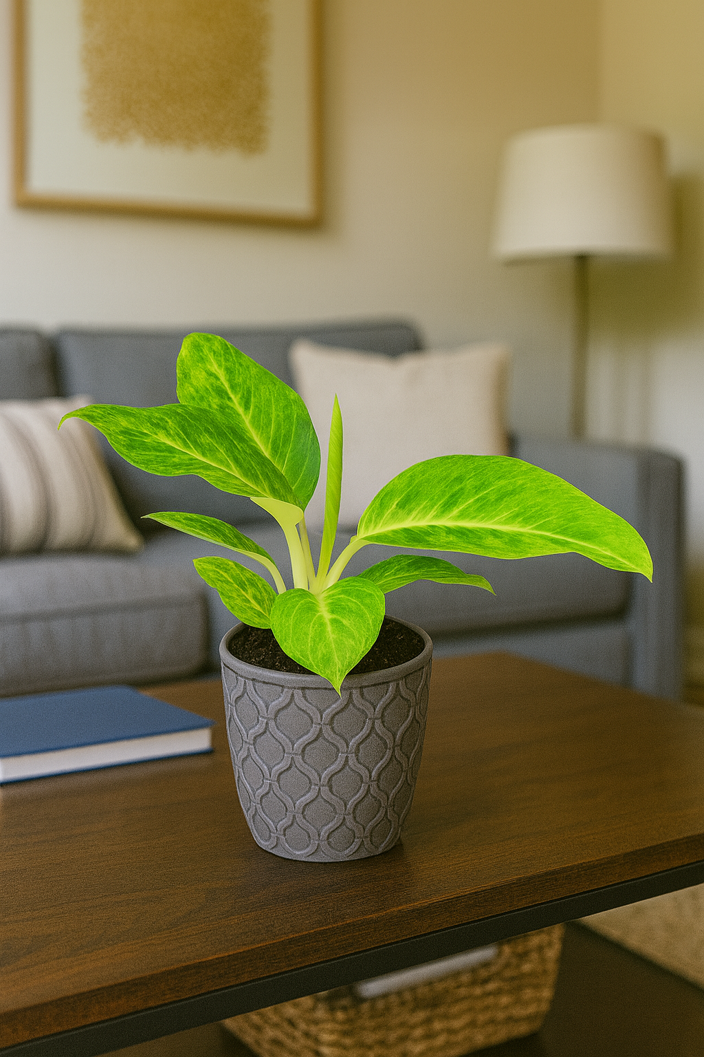 Aglaonema Citronelle pochodzi z tropikalnych lasów Azji Południowo-Wschodniej. To egzotyczna odmiana aglaonemy, która zachwyca jasnozielonymi, cytrynowo-limonkowymi liśćmi z delikatnym połyskiem posiadająca pokrój krzaczasty, zwarty. Jej świeży, soczysty kolor wprowadza do wnętrz energię, światło i harmonię – dlatego świetnie sprawdza się w salonie, biurze czy sypialni.