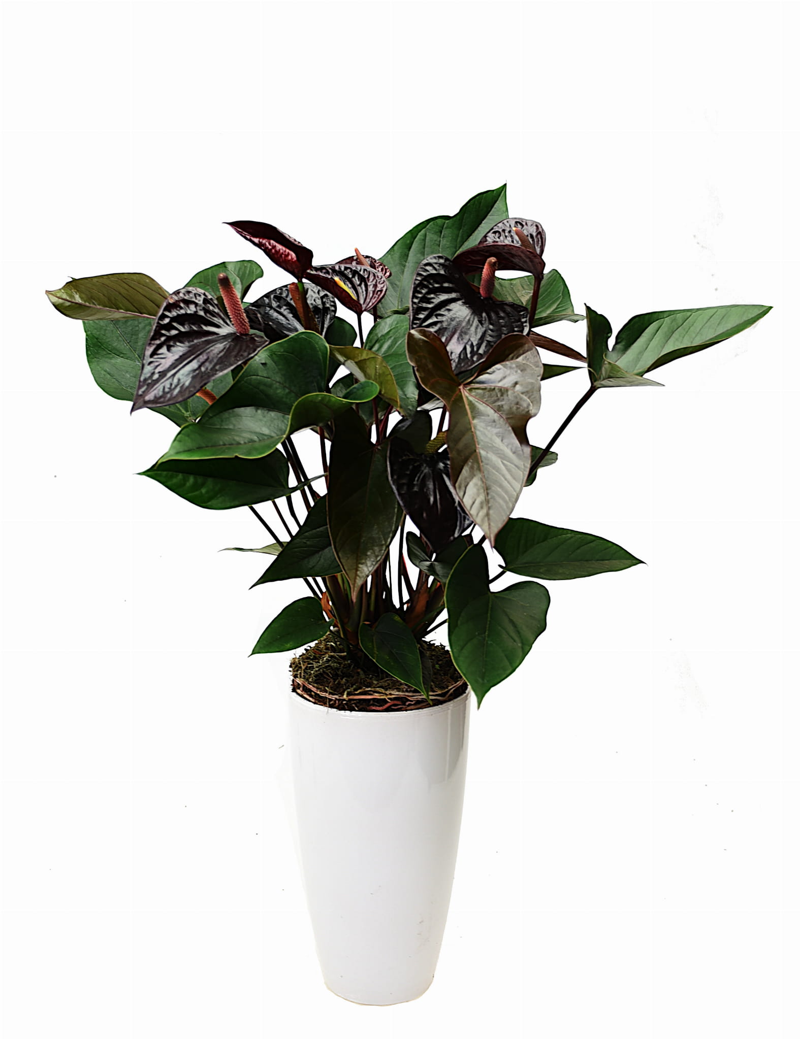 Anthurium Black to wyjątkowa roślina doniczkowa, która zachwyca głęboką, niemal czarną barwą kwiatów kontrastującą z soczyście zielonymi liśćmi. Idealnie sprawdzi się jako efektowna ozdoba wnętrz – salonu, biura czy gabinetu, nadając im nowoczesnego i luksusowego charakteru.