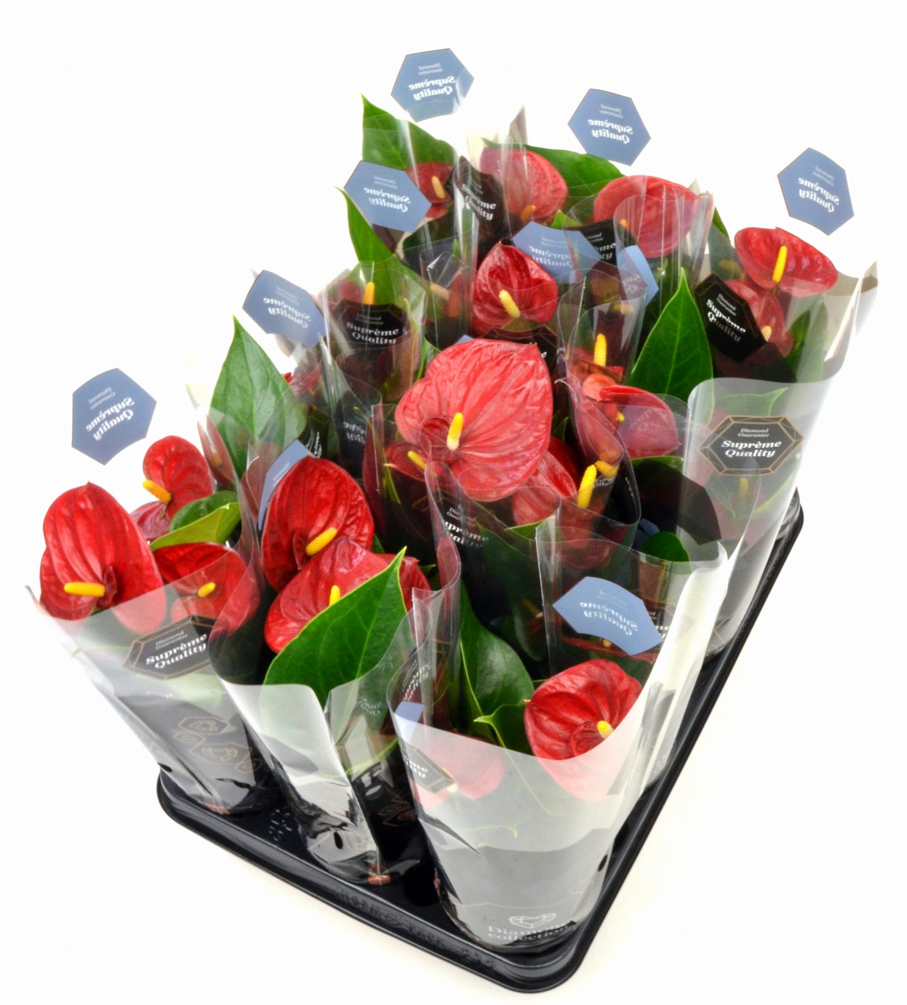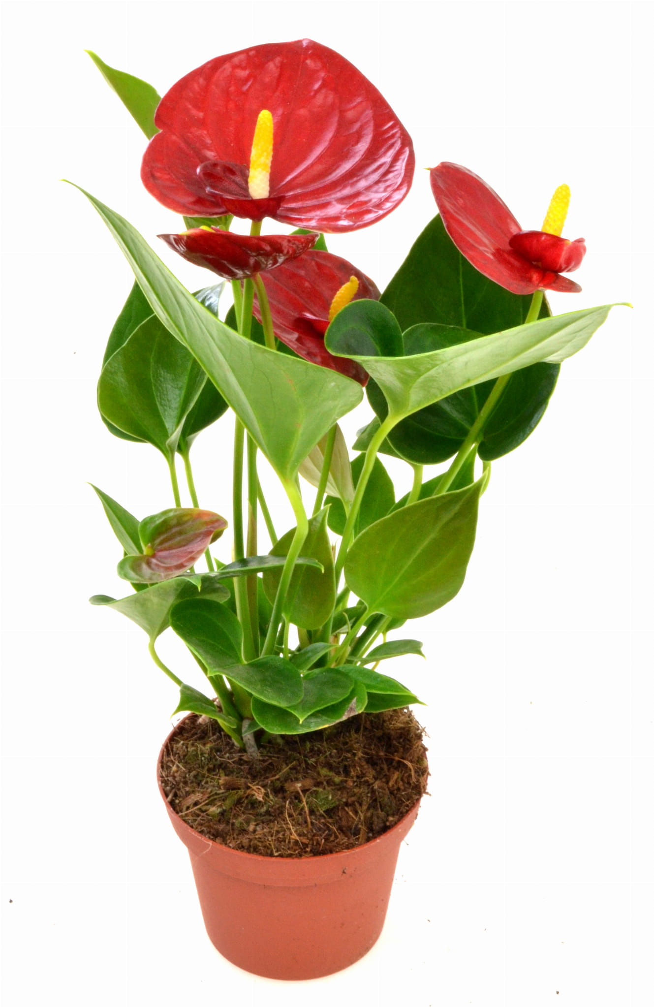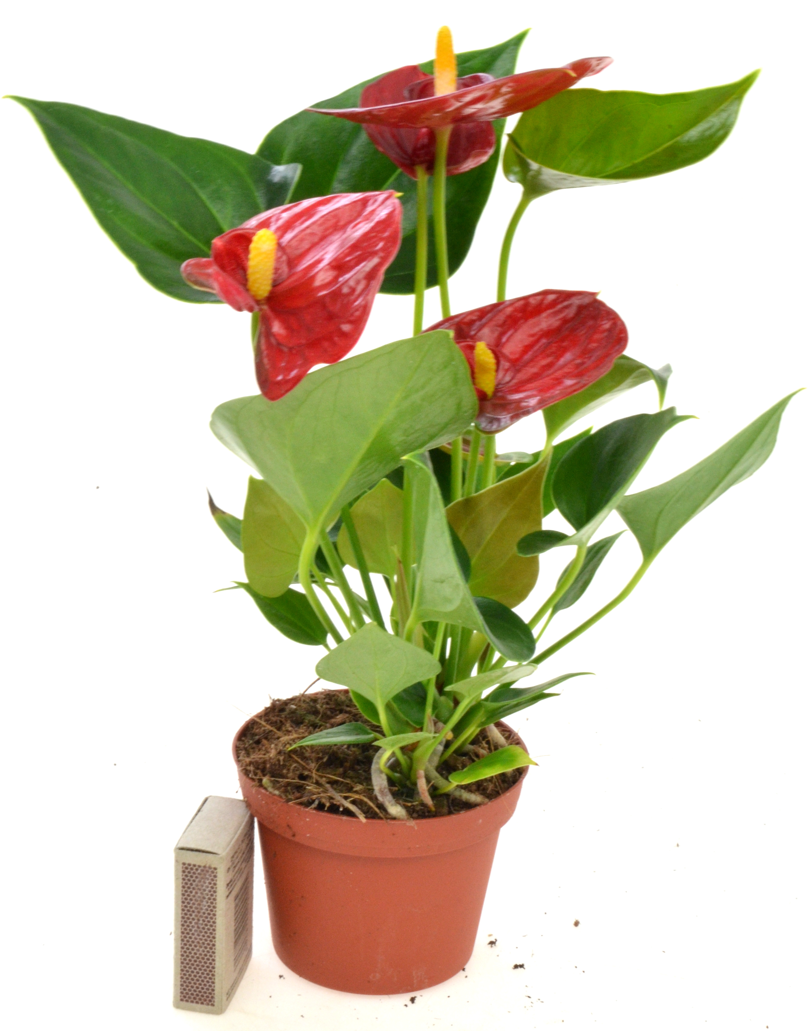 Anturium to roślina pochodząca z lasów tropikalnych Ameryki Środkowej. Posiada owalne, spiczasto zakończone liście, oraz kwiaty o intensywnym czerwonym kolorze zebrane w kolbę. Odpowiednio pielęgnowana może kwitnąć przez cały rok. Rośliny osiągają wysokość 50-90 cm. Liście należy przecierać regularnie wilgotną szmatką, nabłyszczać co 8 tygodni.