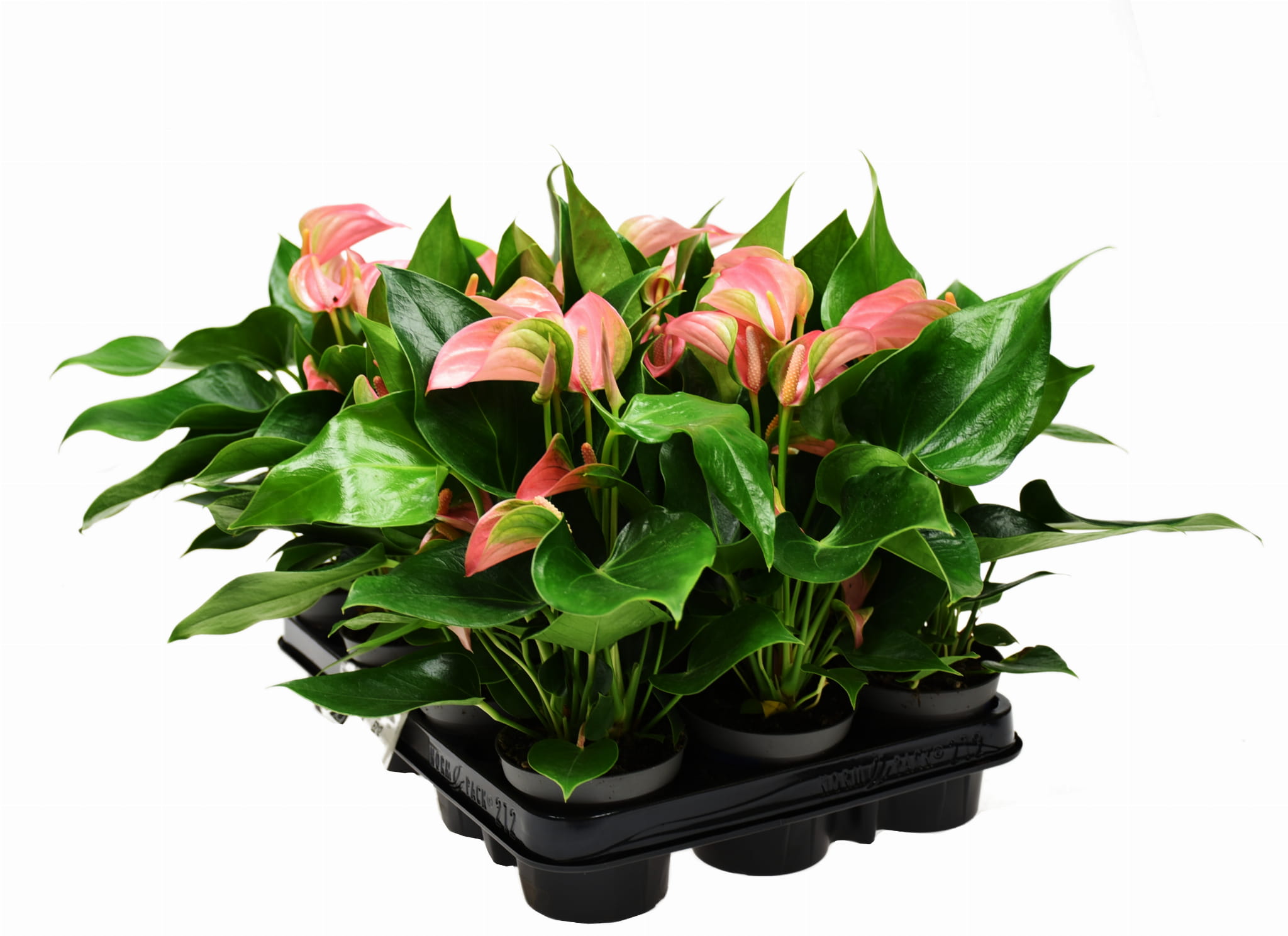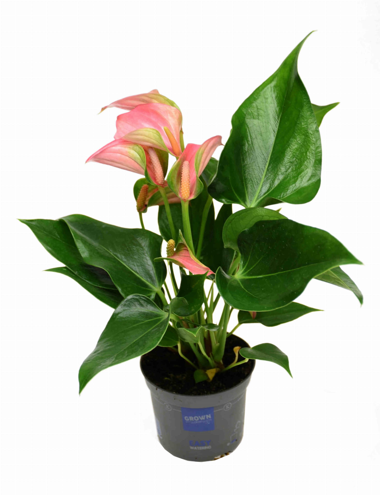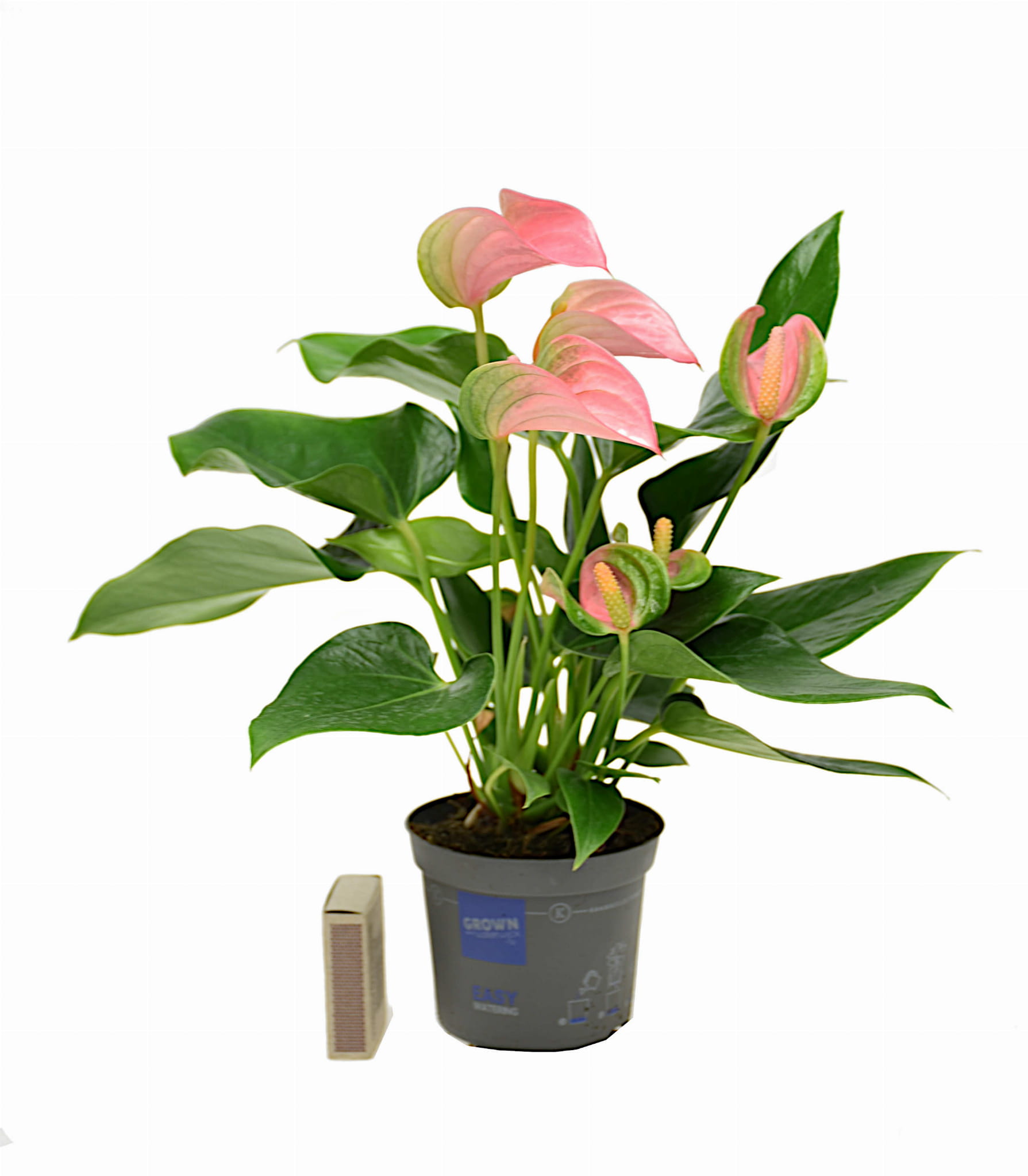 Anturium to roślina pochodząca z lasów tropikalnych Ameryki Środkowej. Posiada owalne, spiczasto zakończone ciemnozielone liście, oraz kwiaty o pięknym bladoróżowym kolorze zebrane w kolbę. Odpowiednio pielęgnowana może kwitnąć przez cały rok. Rośliny osiągają wysokość 50-90 cm. Liście należy przecierać regularnie wilgotną szmatką, nabłyszczać co 8 tygodni. Roślina jest mało wymagająca.