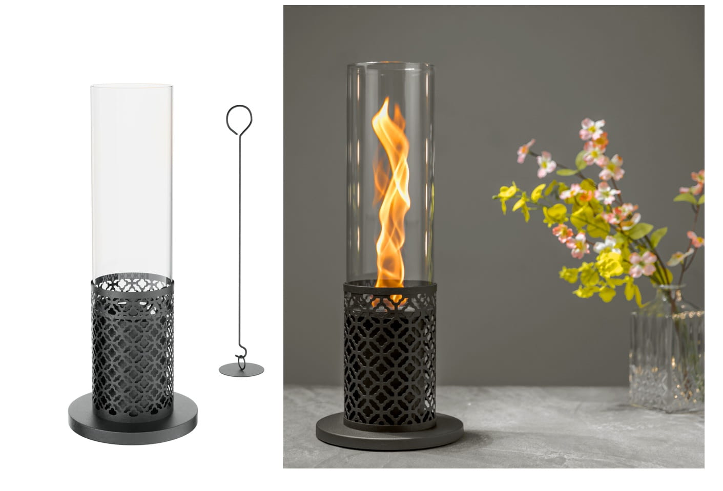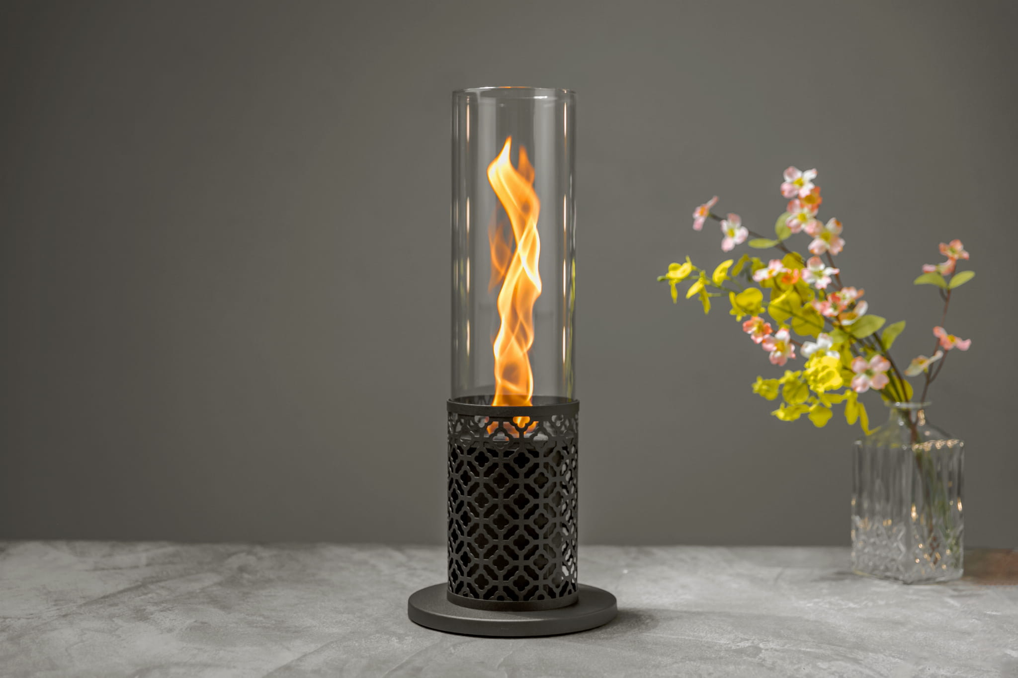 Biokominek TT-10 zachwyca prostą formą i eleganckim wykonaniem. Stalowa konstrukcja jest stabilna i trwała, a dekoracyjny wzór podstawy dodaje mu wyjątkowego charakteru.
