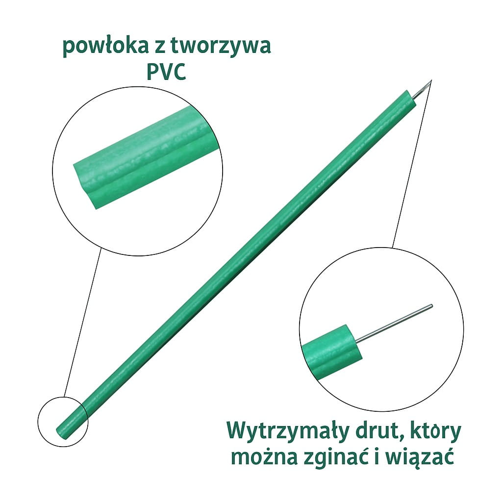 Szybkie i wygodne wiązanie roślin jeszcze nigdy nie było tak proste. Te gotowe, pocięte druciki o długości 20 cm sprawdzą się idealnie w ogrodzie, szklarni, na balkonie i w domu. Dzięki elastycznemu stalowemu rdzeniowi i zielonej powłoce z tworzywa PE, są trwałe, odporne na wilgoć i nie uszkadzają roślin.