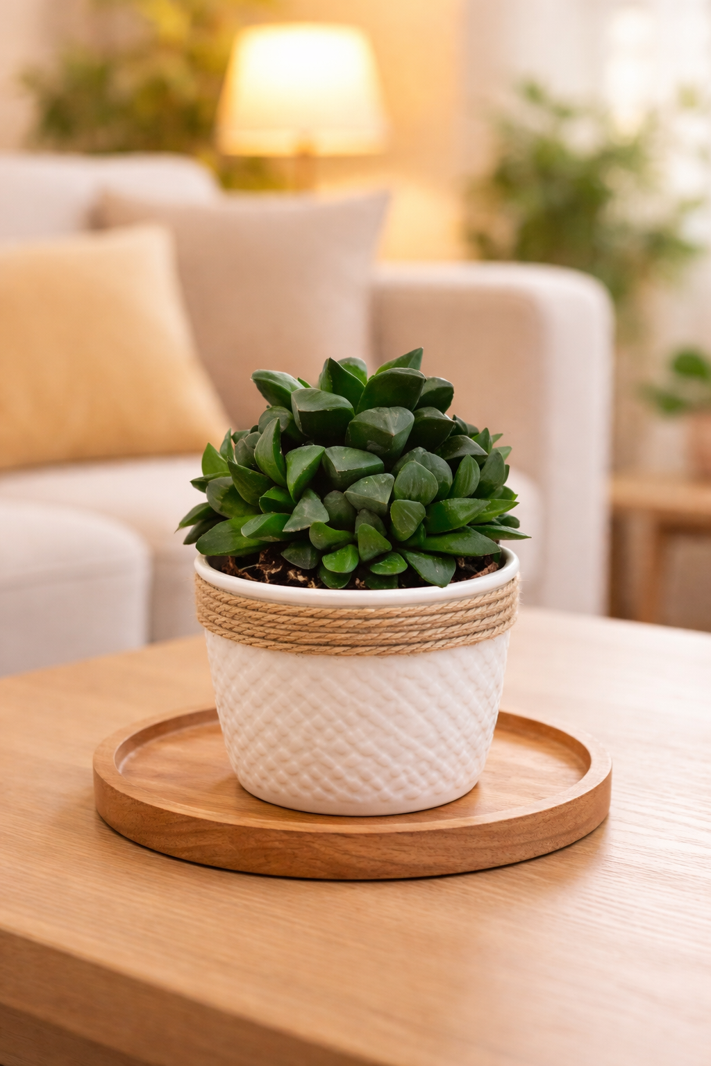 Sukulent ten występuje w południowej części kontynentu Afrykańskiego. Charakteryzuje się gęstą, strzelistą, jasnozieloną rozetą, którą tworzą mięsiste, grube liście ze spiczastymi końcówkami. Dzięki umiejętności gromadzenia wody w liściach, roślina ta jest idealnym rozwiązaniem dla ludzi zabieganych i zapominalskich. Haworthia toleruje słabe oświetlenie w pomieszczeniach. Jest wyposażona w przezroczyste „okienka liściowe”, dzięki czemu dociera do jej wnętrza więcej światła, jednocześnie czyniąc z niej roślinę kolekcjonerską.