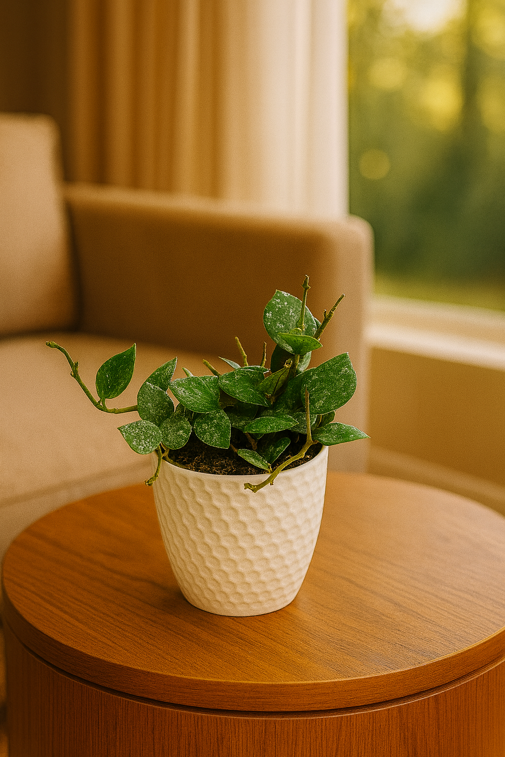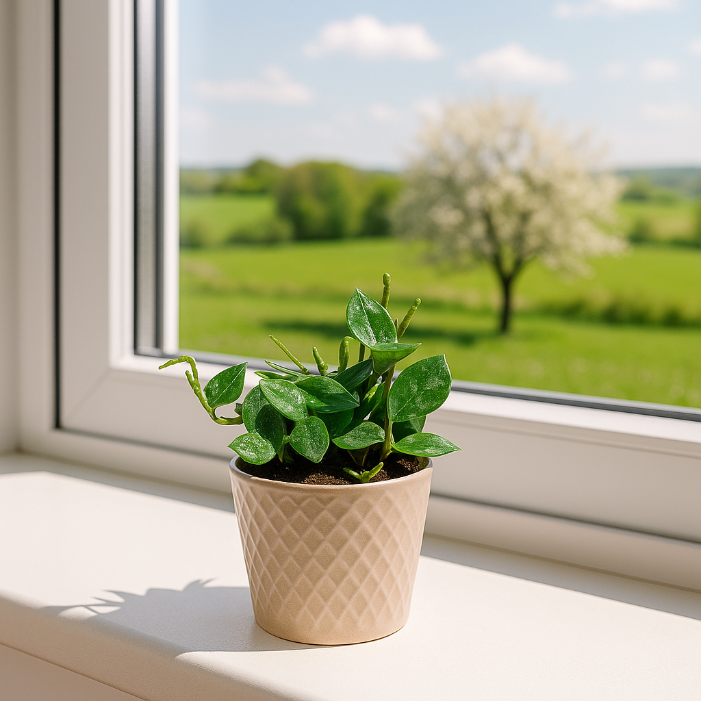 Egzotyczna Hoya Krohniana Splash to wyjątkowa odmiana woskownicy o sercowatych liściach. Pochodzi z Filipin. Jej pokrój jest wisząco- płożący. Idealna do wnętrz – łatwa w uprawie, dekoracyjna i oczyszczająca powietrze. Jest to niezwykle efektowna roślina tropikalna pochodząca z Filipin. Jej największym atutem są małe, sercowate liście z wyraźnymi srebrzystymi plamkami (splash), które nadają jej wyjątkowego, dekoracyjnego wyglądu. Ta odmiana należy do grupy woskownic– roślin o mięsistych liściach i długowiecznym wzroście. Z czasem tworzy zwisające pędy, dzięki czemu doskonale prezentuje się w wiszących donicach, na półkach lub kwietnikach. W sprzyjających warunkach zakwita drobnymi, białymi kwiatami o przyjemnym zapachu miodu.