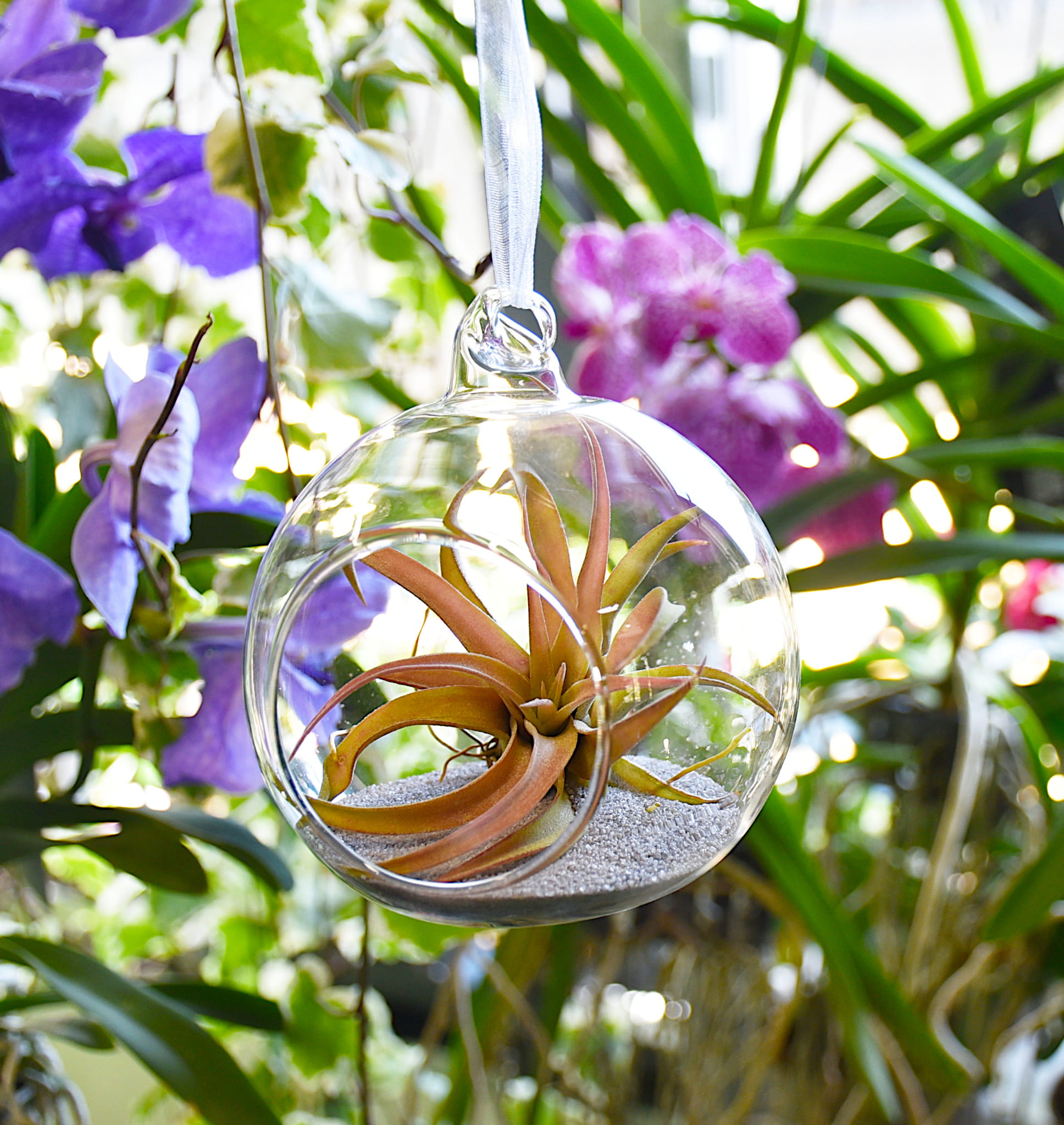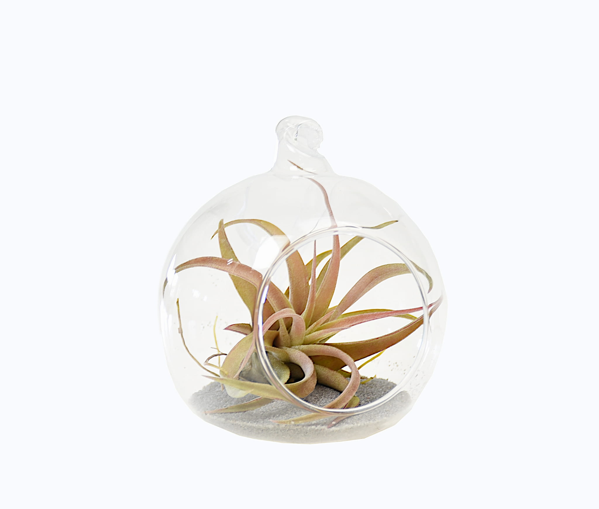 Szklana kula o przeźroczystych ściankach jest idealnym sposobem na wyeksponowanie ukochanej oplątwy i stwarza niesamowite możliwości aranżacji w naszych domach. Bańka posiada otwór, który zapewnia tillandsii odpowiednią cyrkulację powietrza. Dzięki minimalistycznej formie sprawdzi się w klasycznych, ale i nowoczesnych wnętrzach.