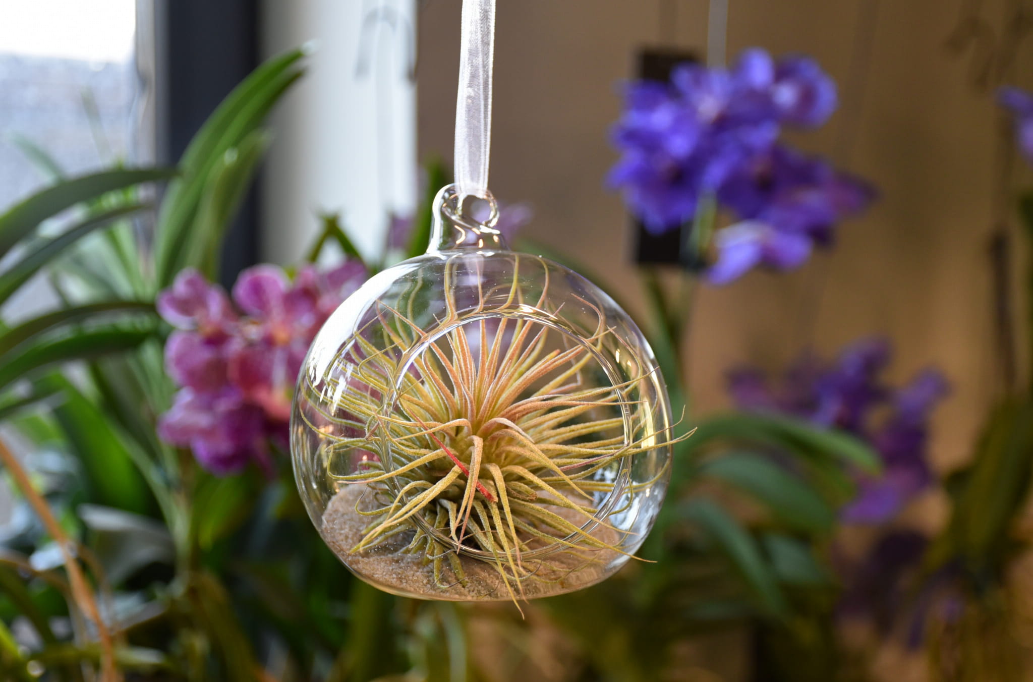 Kompozycja szklana kula bańka oplątwa tillandsia Ionantha