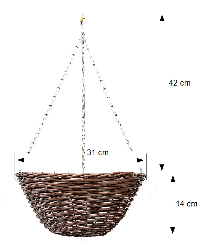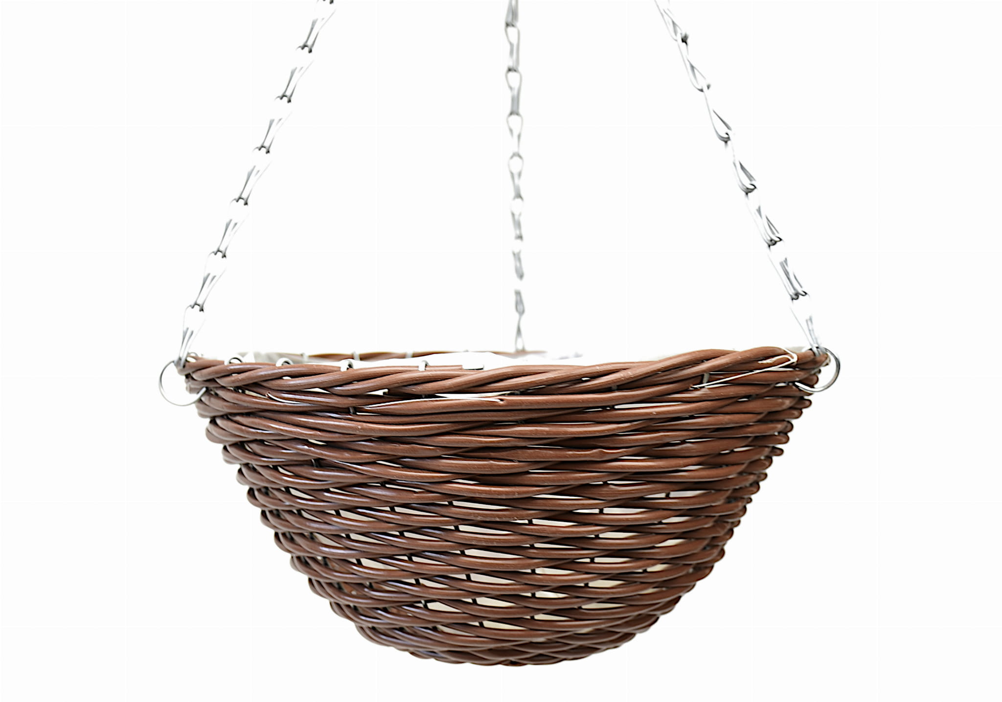 Kosz wiszący na kwiaty, wisząca donica, technoratan 17-424 BROWN