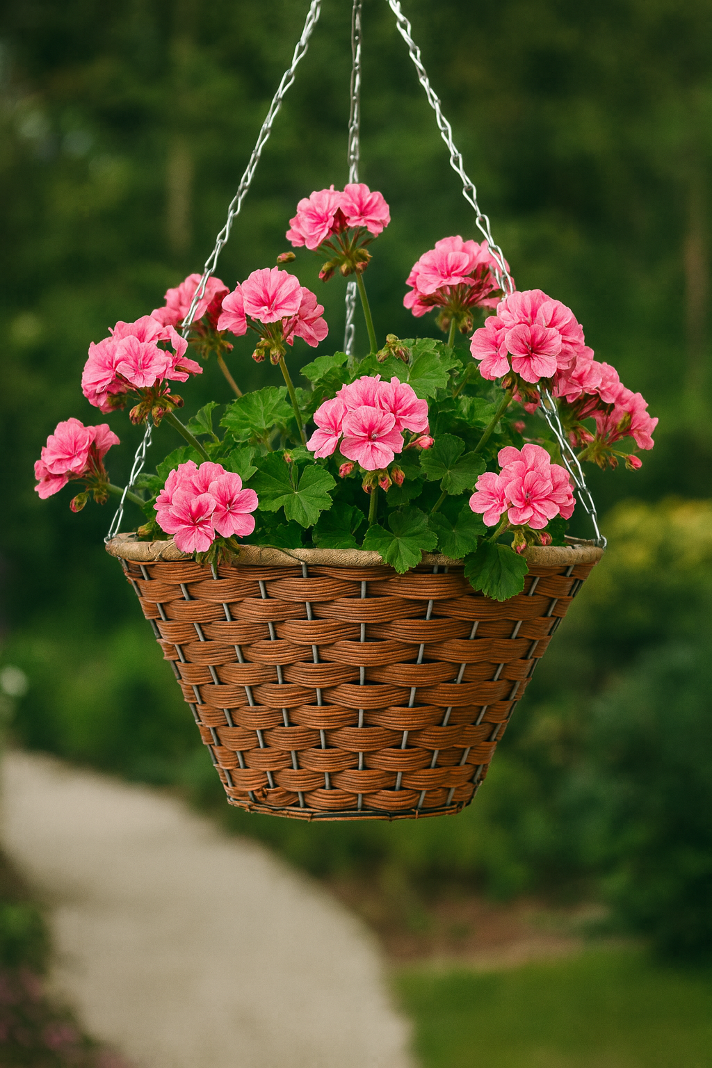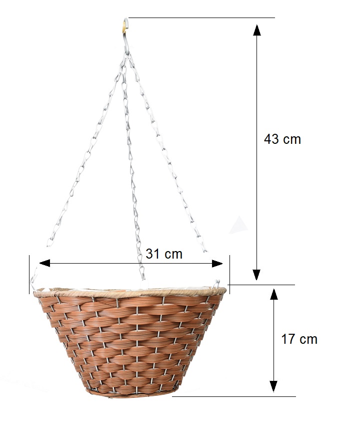 Wnętrze kosza wyścielone jest folią, co umożliwia sadzenie roślin bezpośrednio w jej wnętrzu, bez dodatkowych osłonek. Stelaż donicy wykonany jest z ocynkowanego drutu, dzięki czemu kosz będzie dłużej służyć nam jako ekspozytor roślin.