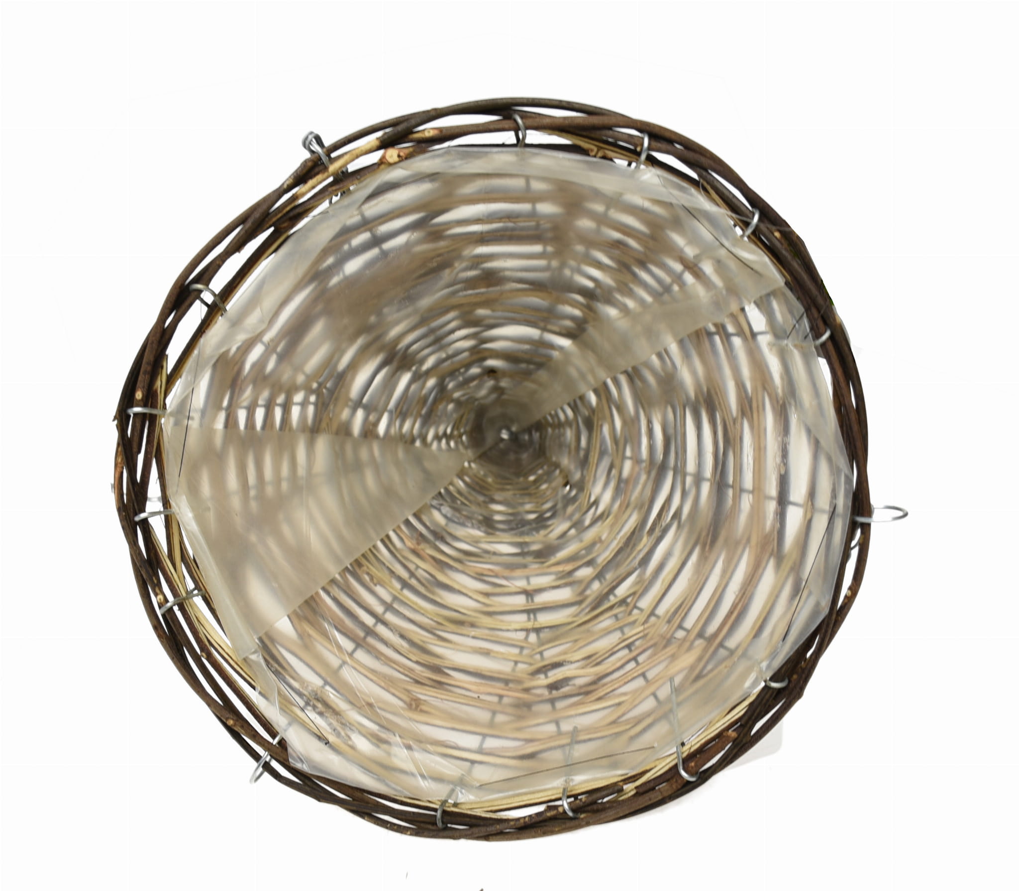 Wnętrze kosza wyścielone jest folią, co umożliwia sadzenie roślin bezpośrednio w jego wnętrzu, bez dodatkowych osłonek. Stelaż kosza wykonany jest z ocynkowanego drutu, co niewątpliwie zwiększa jego trwałość. Wykonany z naturalnych materiałów kosz podkreśli piękno żywych roślin, zwłaszcza tych o długich zwisających pędach.