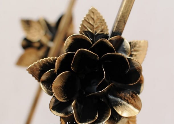 Charakteru vintage dodają mu piękne ornamenty, barwy uzyskane metodą malowania proszkowego oraz patynowania na kolor starego złota.