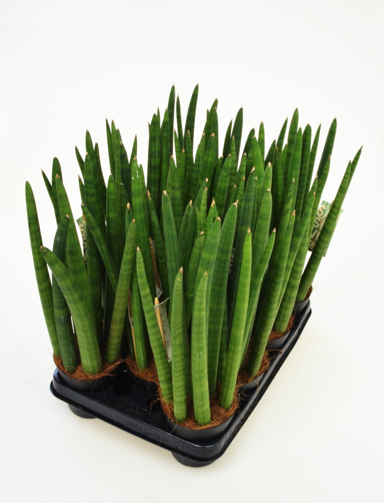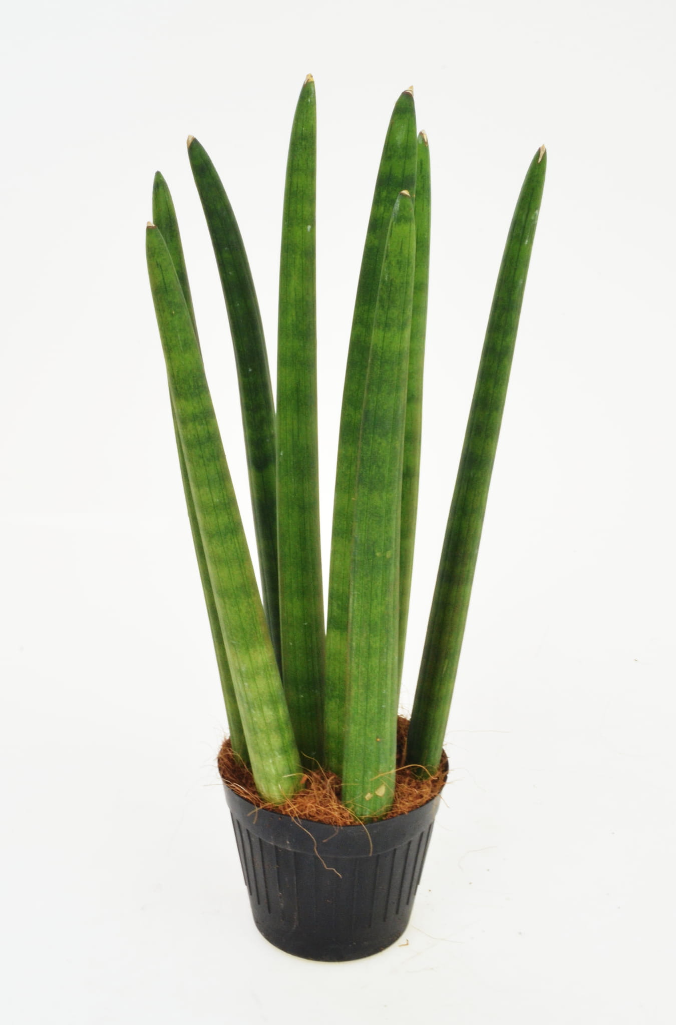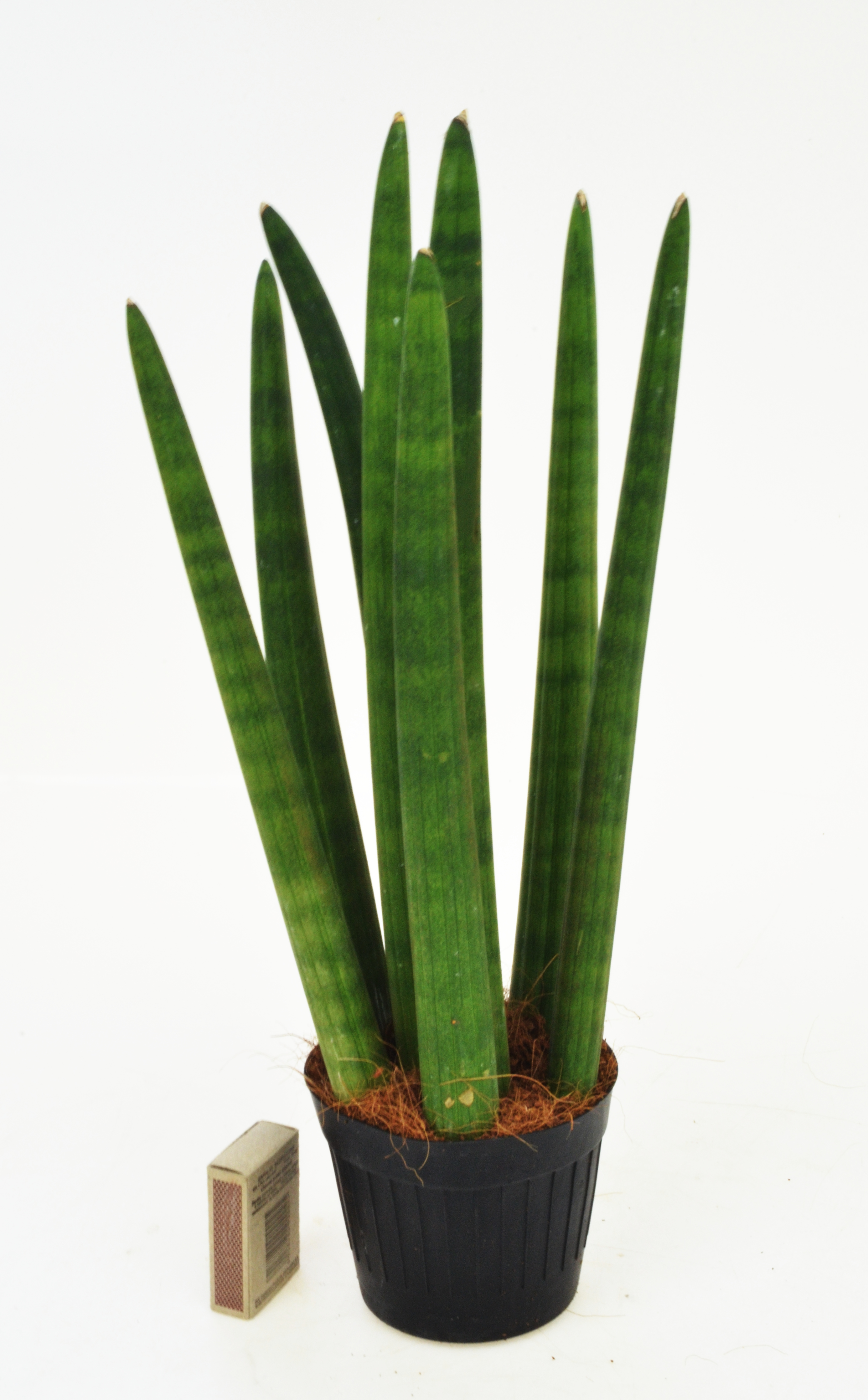 Sanseviera ta pochodzi z południowo- zachodniej Afryki. Należy do sukulentów z rodziny szparagowatych. Ze względu na swój kształt i ostre końce często potocznie nazywana jest ‘językiem teściowej’. Dzięki swej smukłej i strzelistej budowie doskonale sprawdzi się w nowoczesnych wnętrzach. Roślinę tworzą kępy o grubych, mięsistych, cylindrycznych liściach, które posiadają ciemnozieloną barwę przeplataną jasnymi pasmami.