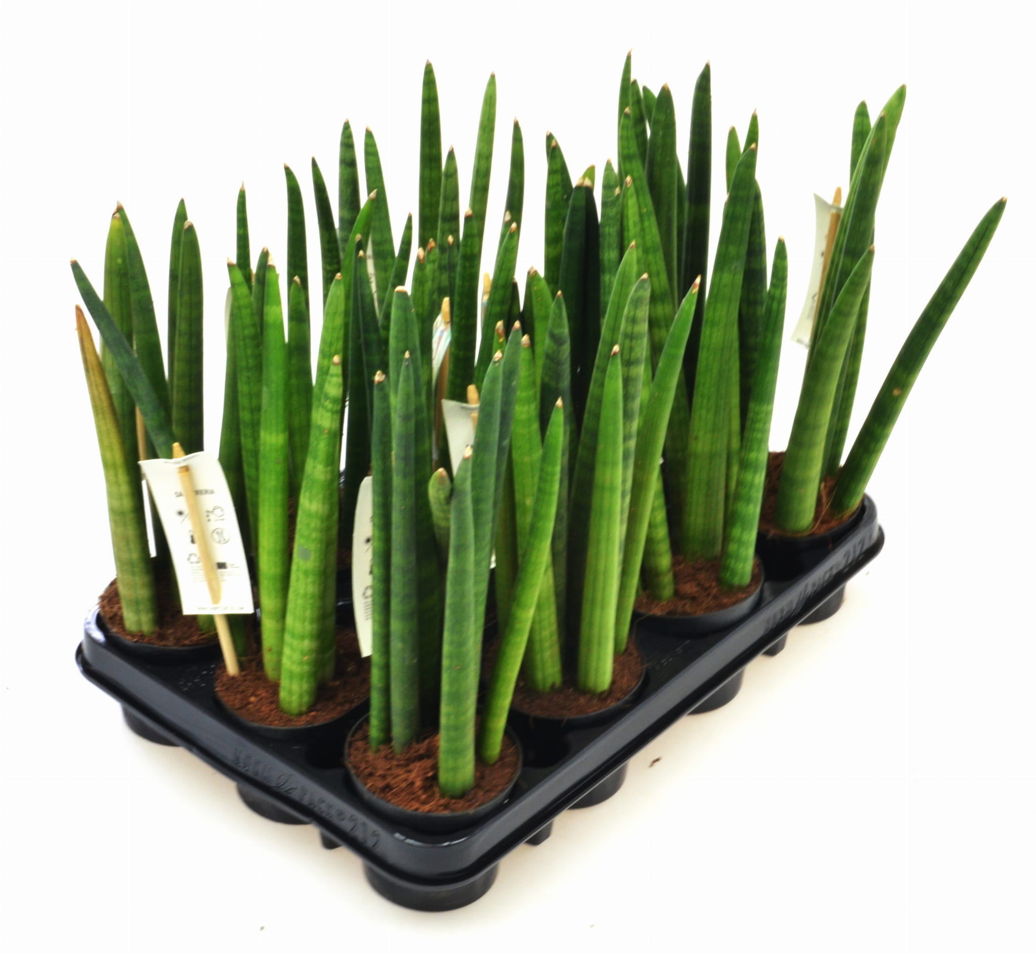 Sanseviera ta pochodzi z południowo- zachodniej Afryki. Należy do sukulentów z rodziny szparagowatych. Ze względu na swój kształt i ostre końce często potocznie nazywana jest ‘językiem teściowej’. Dzięki swej smukłej i strzelistej budowie doskonale sprawdzi się w nowoczesnych wnętrzach. Roślinę tworzą kępy o grubych, mięsistych, cylindrycznych liściach, które posiadają ciemnozieloną barwę przeplataną jasnymi pasmami.