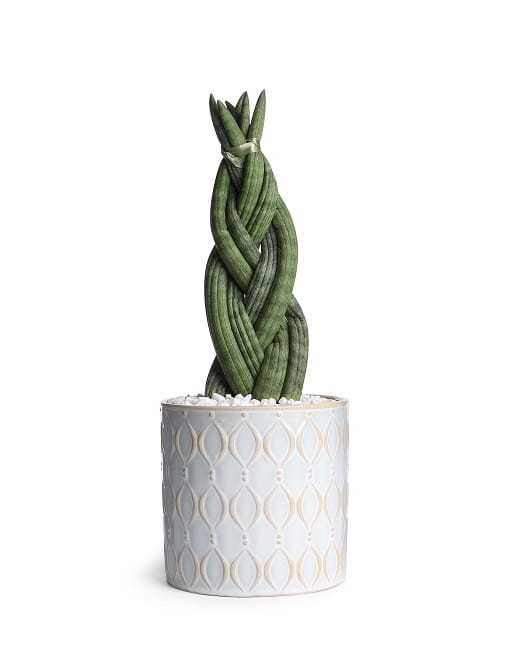 Sanseviera ta pochodzi z południowo- zachodniej Afryki. Należy do sukulentów z rodziny szparagowatych. Ze względu na swój kształt i ostre końce często potocznie nazywana jest ‘językiem teściowej’. Dzięki swej smukłej i strzelistej budowie doskonale sprawdzi się w nowoczesnych wnętrzach. Roślinę tworzą kępy o grubych, mięsistych, cylindrycznych liściach, które posiadają ciemnozieloną barwę przeplataną jasnymi pasmami.