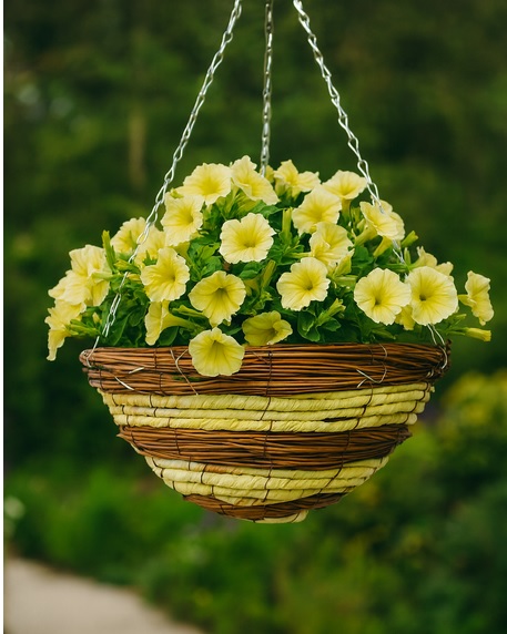 Wnętrze kosza wyścielone jest folią, co umożliwia sadzenie roślin bezpośrednio w jego wnętrzu, bez dodatkowych osłonek. Stelaż kosza wykonany jest z ocynkowanego drutu, co niewątpliwie zwiększa jego trwałość.